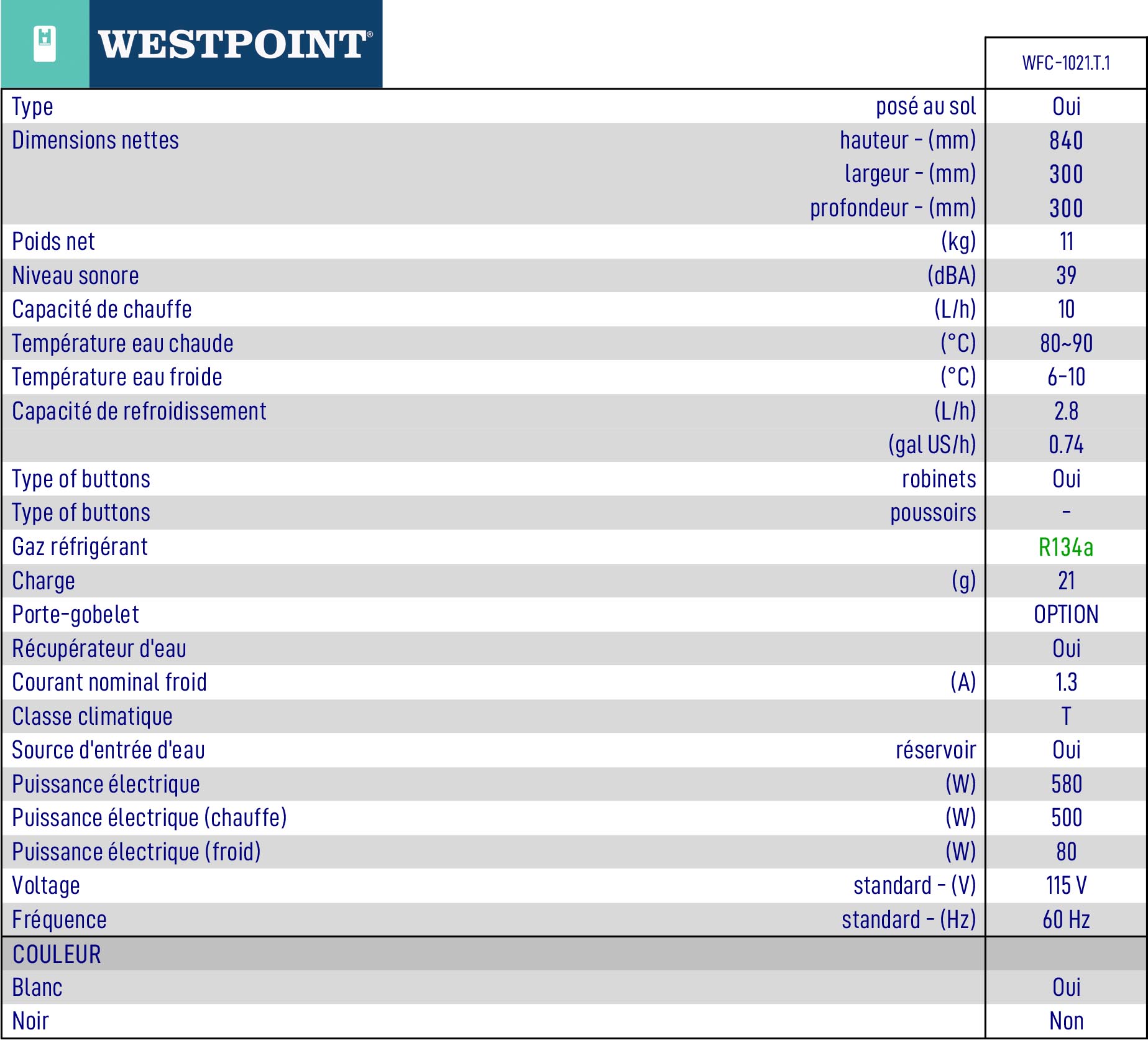 Distributeur d'Eau Froid/Chaud 110V/60HZ Westpoint