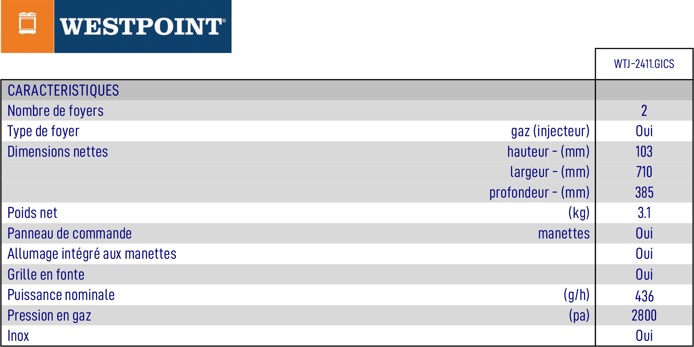 Cuisinière au Gaz Propane à Allumage Automatique à 2 Brûleurs en Fonte Westpoint